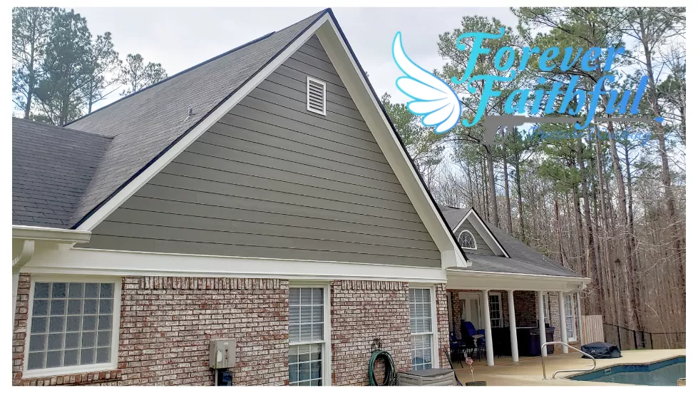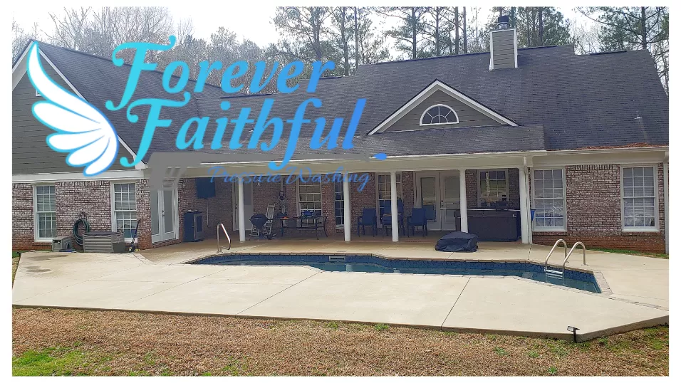 We at Forever Faithful Pressure Washing had the opportunity to pressure wash for an amazing family in Fortson, Georgia. By treating and removing all organic growth on the home, concrete, and pool deck our pressure washing pros were able to restore the true beauty of this home.