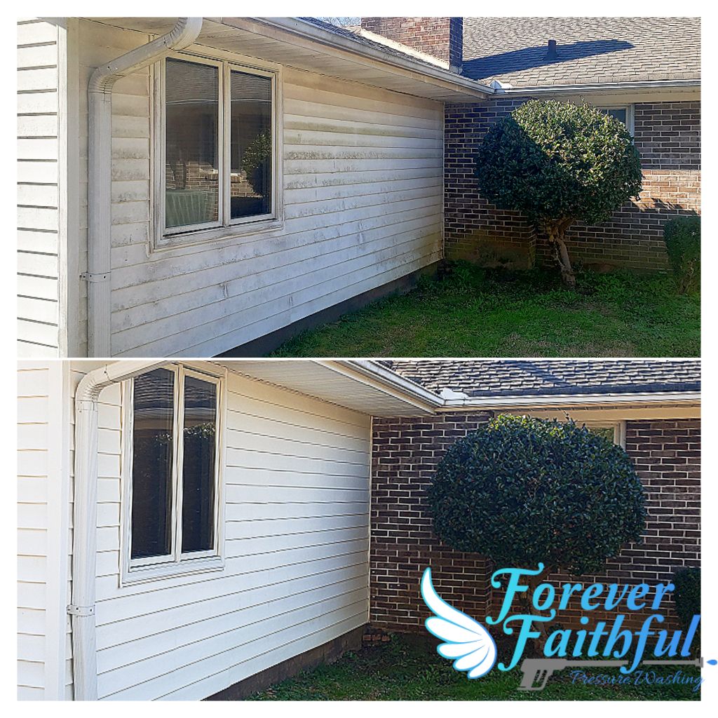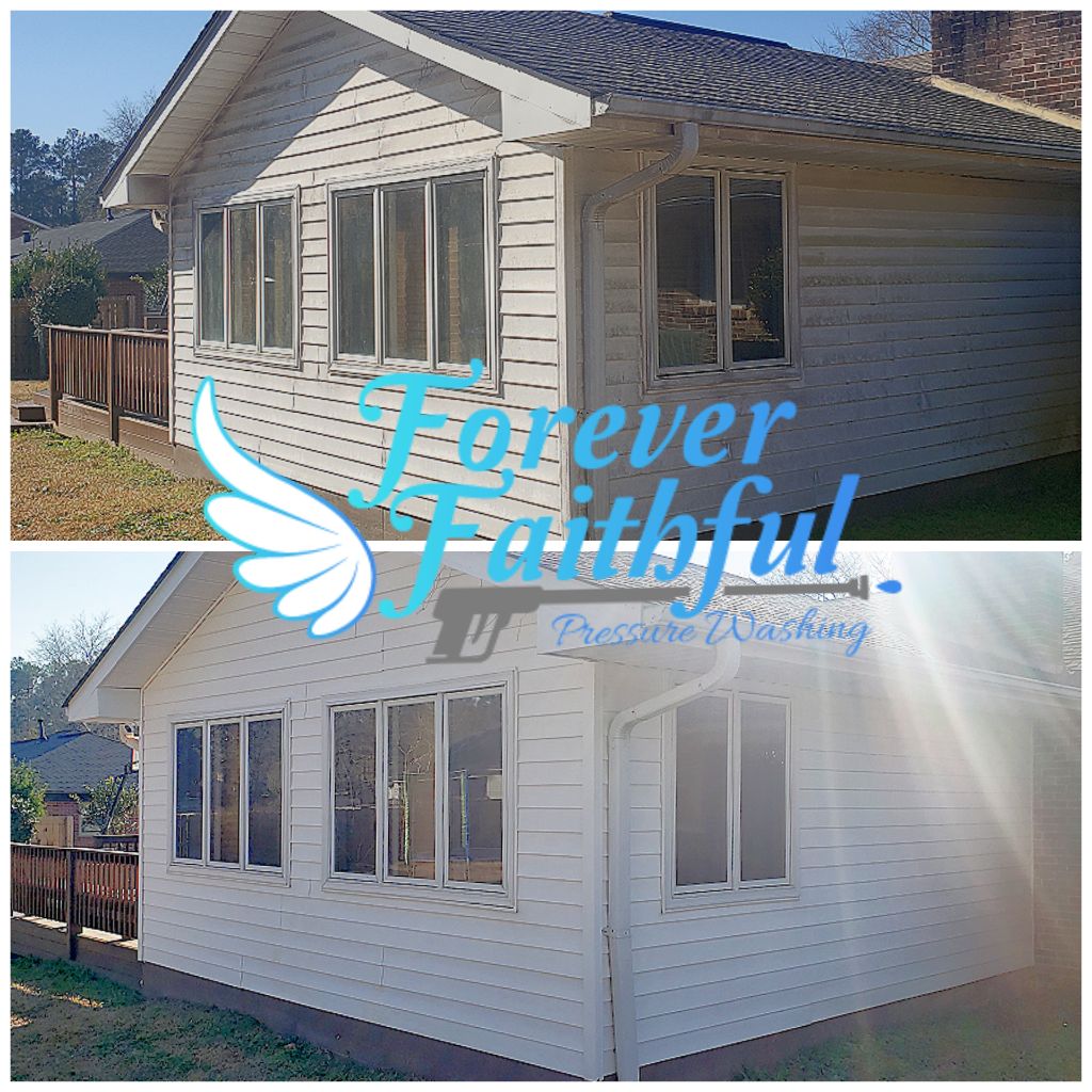 Customer reached out to Forever Faithful Pressure Washing to have their family home and concrete cleaned in West Point, Ga! Our pressure washing pros went out and performed our Soft Wash House Washing process and our High Pressure Washing Concrete Cleaning services and everything looks amazing AGAIN!